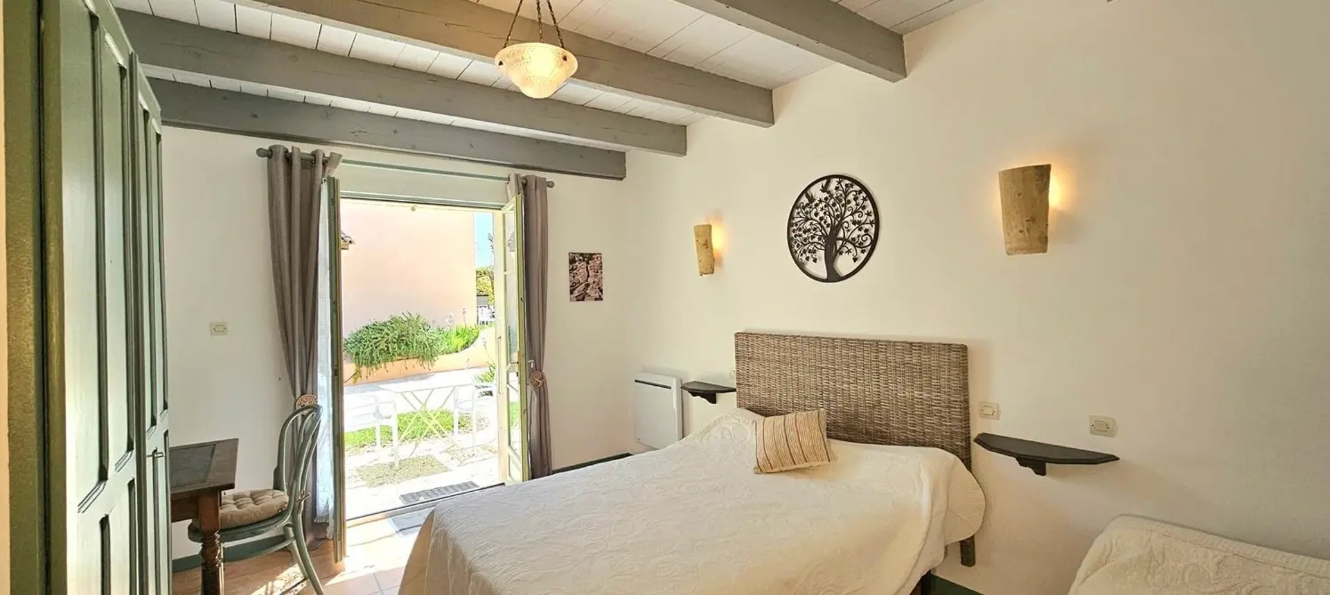 Accès direct sur l'extérieur avec table et chaises de jardin, mitoyen avec la chambre Sauge.